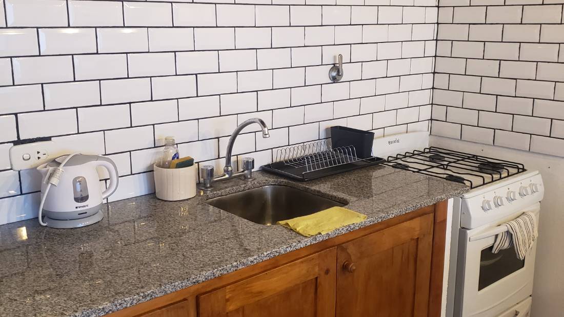 Monoambiente en dúplex en alquiler turístico para 3 pax., una habitación con cama matrimonial, living con sofá cama, baño, WIFI, totalmente equipado. Centro de San Martin de los Andes