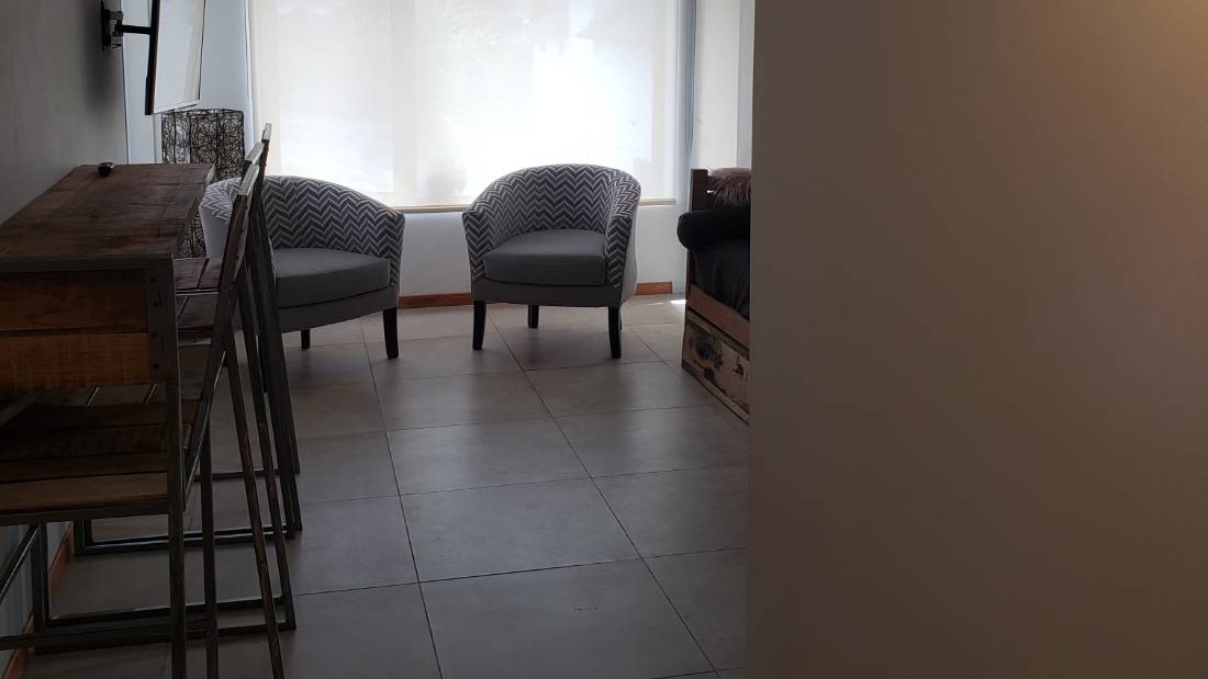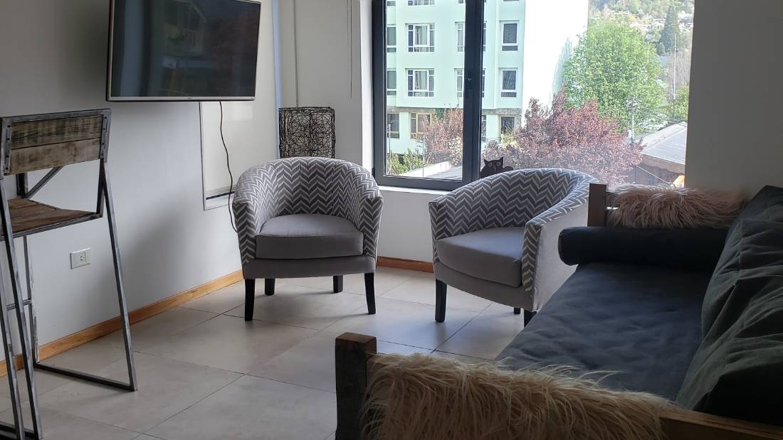 Departamento en alquiler turístico para cuatro pasajeros, lavarropas, Balcón. Una habitación con cama matrimonial, living con sofá cama. Ubicación céntrica sobre avenida San Martín. Totalmente equipado. TV, Internet, calefacción por losa radiante, Linda vista. Segundo piso acceso por escalera. Ideal para descansar